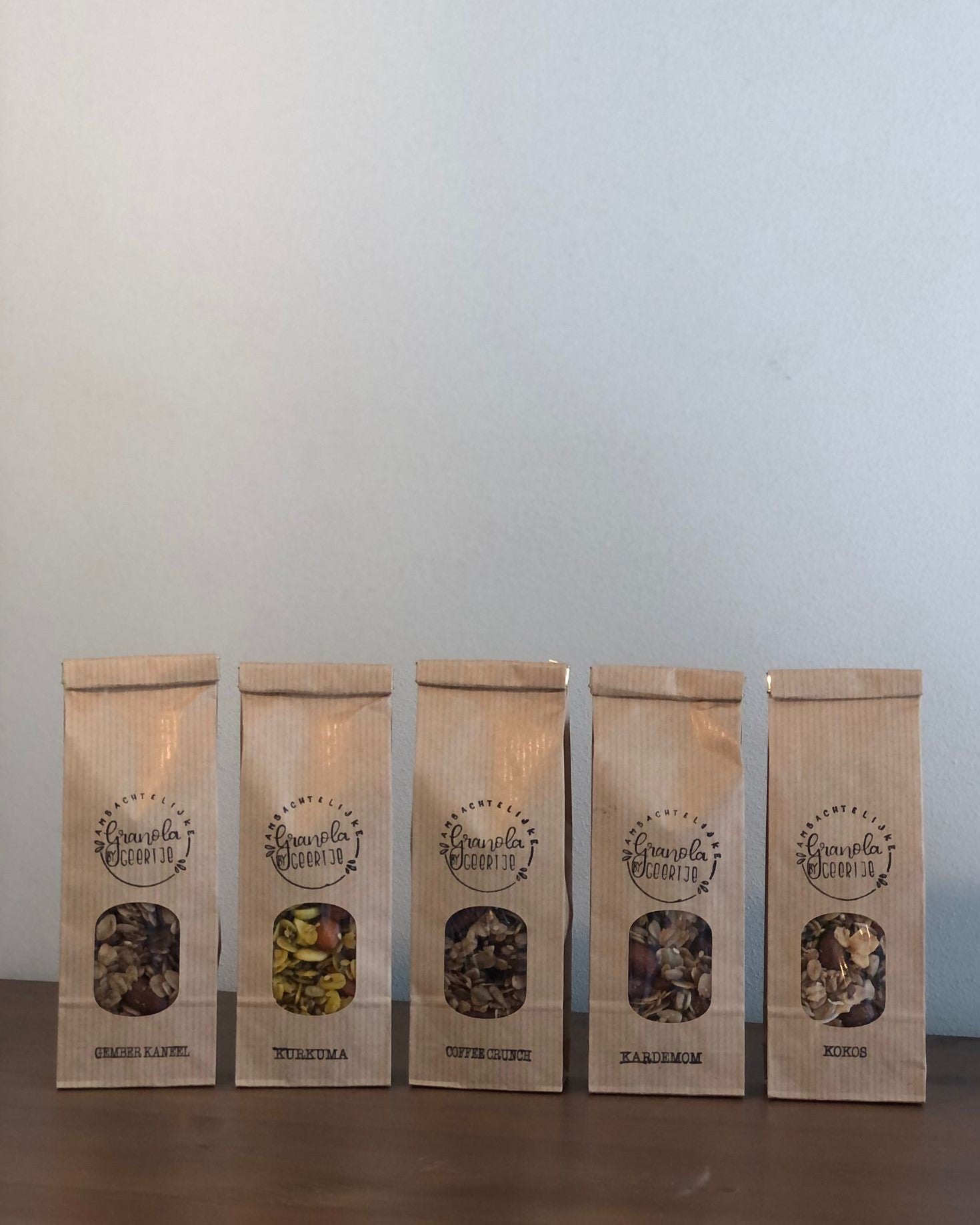 Let op! Granola wordt alleen verpakt en verzonden op dinsdag en vrijdag. De andere dagen hebben we nodig om al het lekkers te maken. We hebben weinig op voorraad zodat de granola altijd zo vers mogelijk bij jou komt!